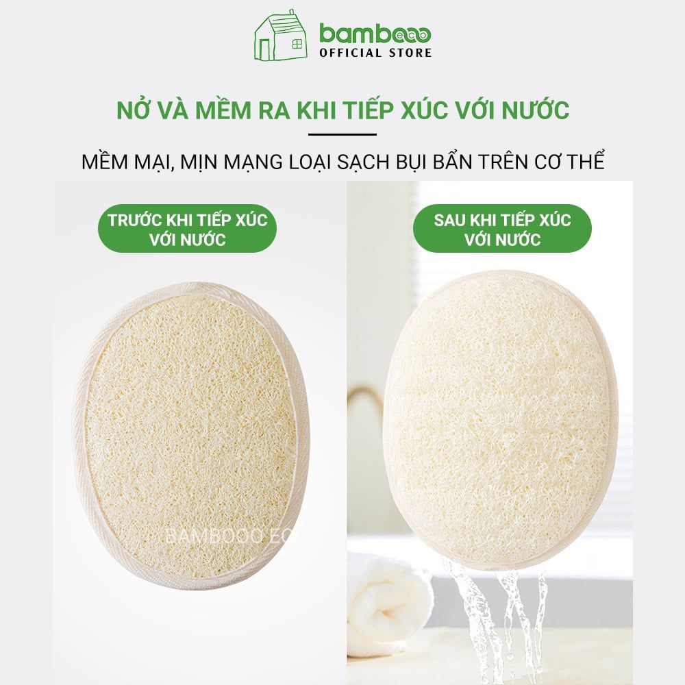 Bông tắm xơ mướp BAMBOOO ECO tự nhiên, tẩy da chết, massage linh hoạt