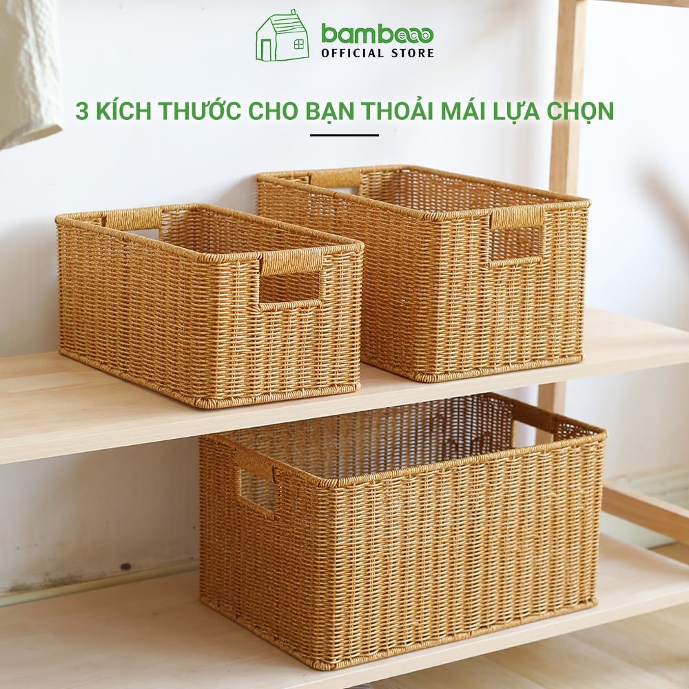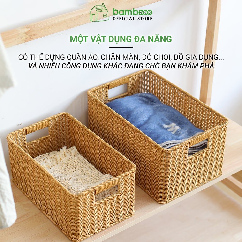 Giỏ nhựa giả mây BAMBOOO ECO đựng quần áo, đồ chơi, vật dụng gia đình, tủ kệ phòng khách, phòng ngủ