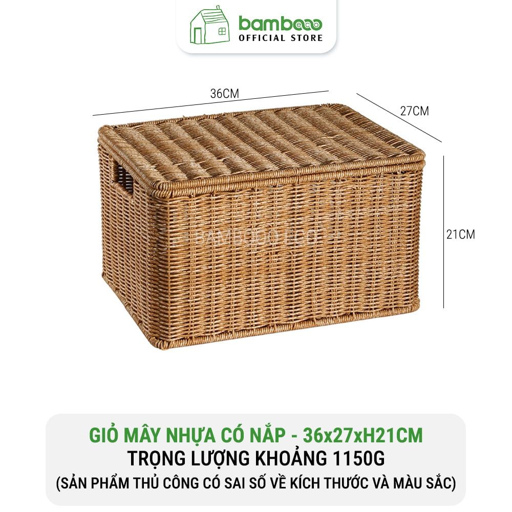 Giỏ Nhựa Giả Mây Có Nắp BAMBOOO ECO Giúp Bảo Quản Đồ Dùng Gọn Gàng Chống Bụi Hiệu Quả