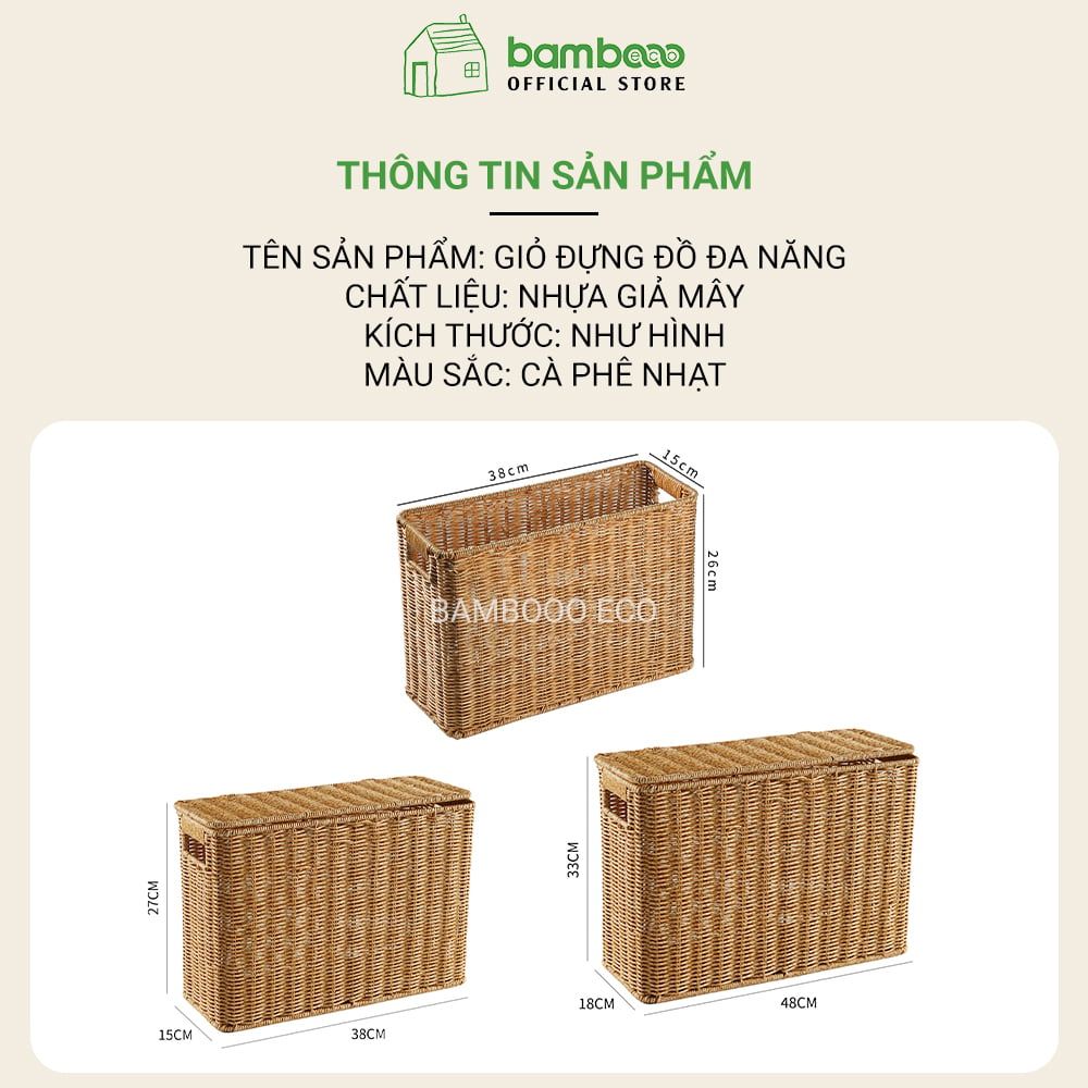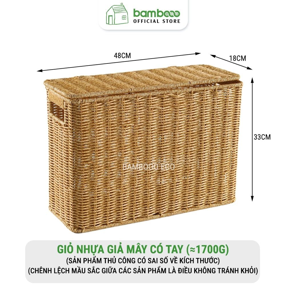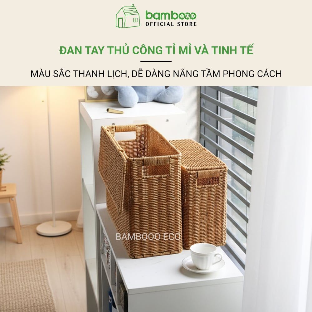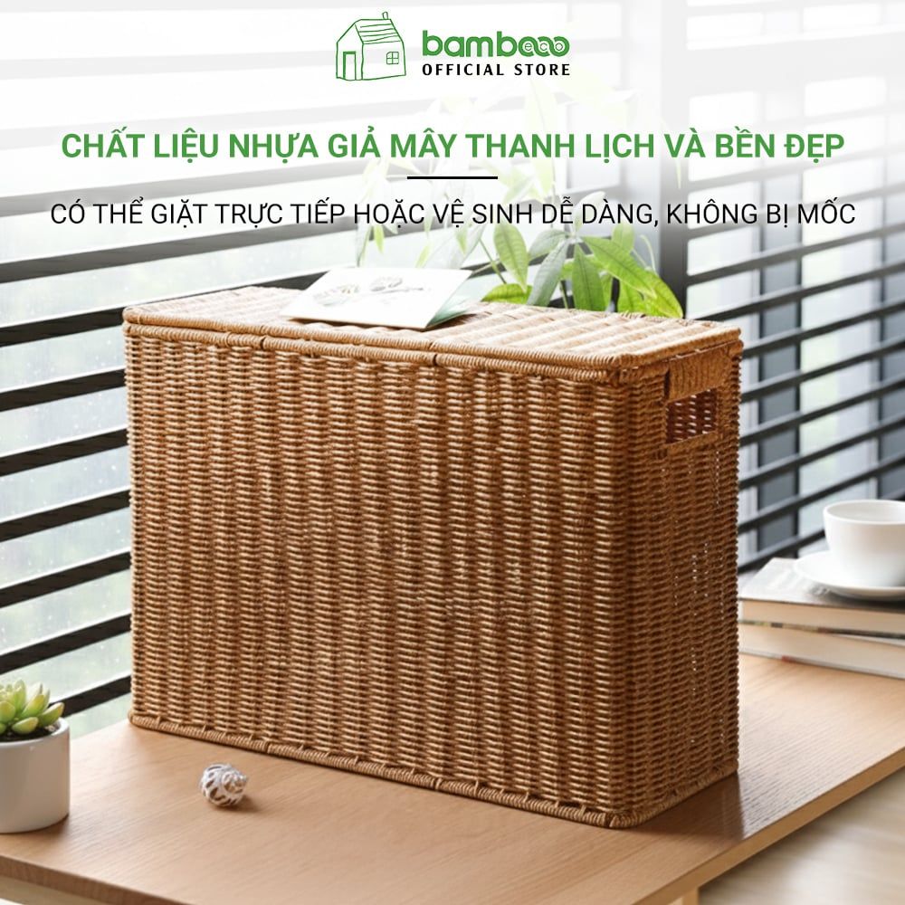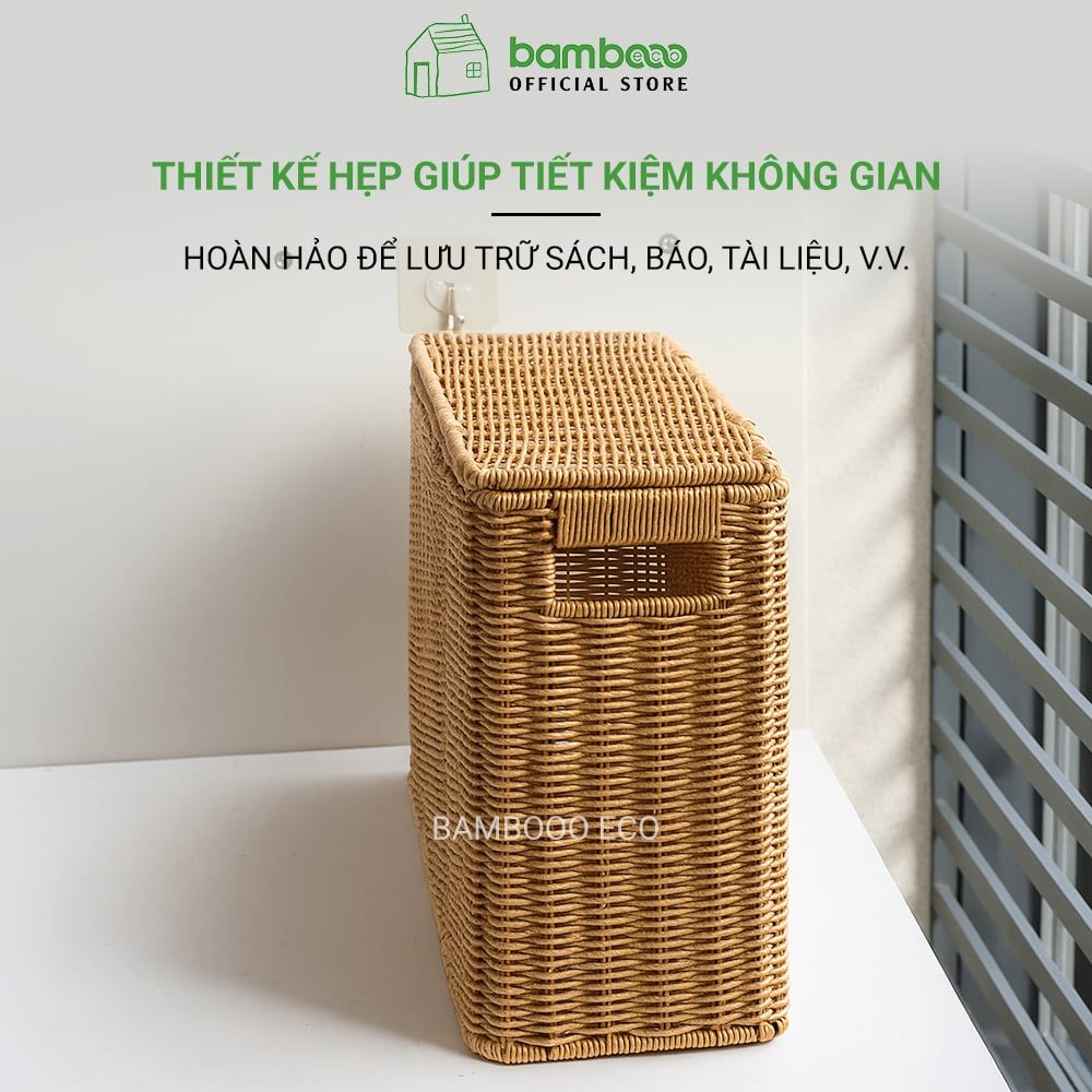 Giỏ nhựa giả mây có nắp BAMBOOO ECO thùng đựng đồ cao hẹp - tiết kiệm không gian - gọn gàng góc tủ