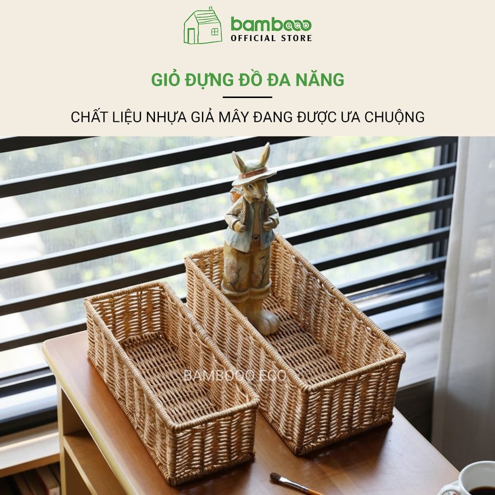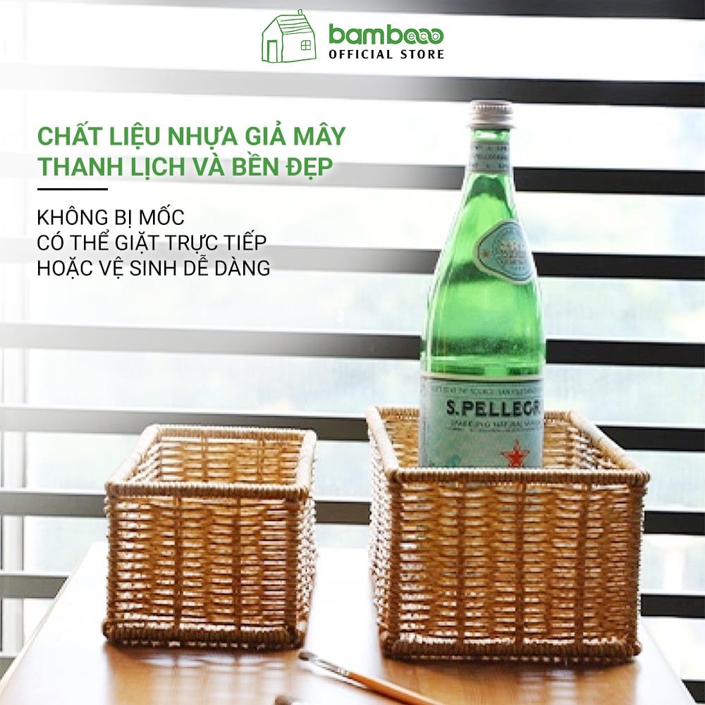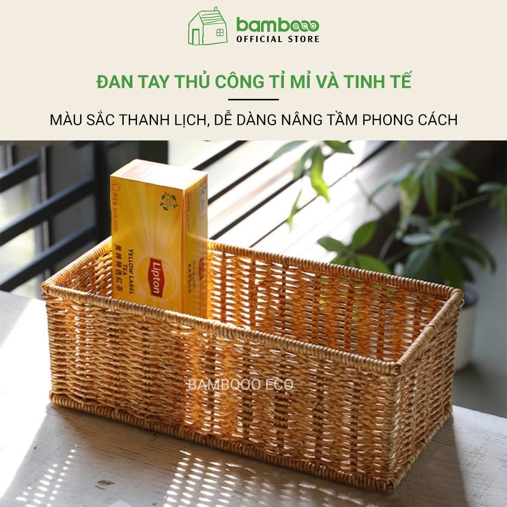 Hộp đựng đồ lặt vặt giả mây BAMBOOO ECO giỏ nhựa đựng điều khiển, gia vị, mỹ phẩm, vật dụng gia đình