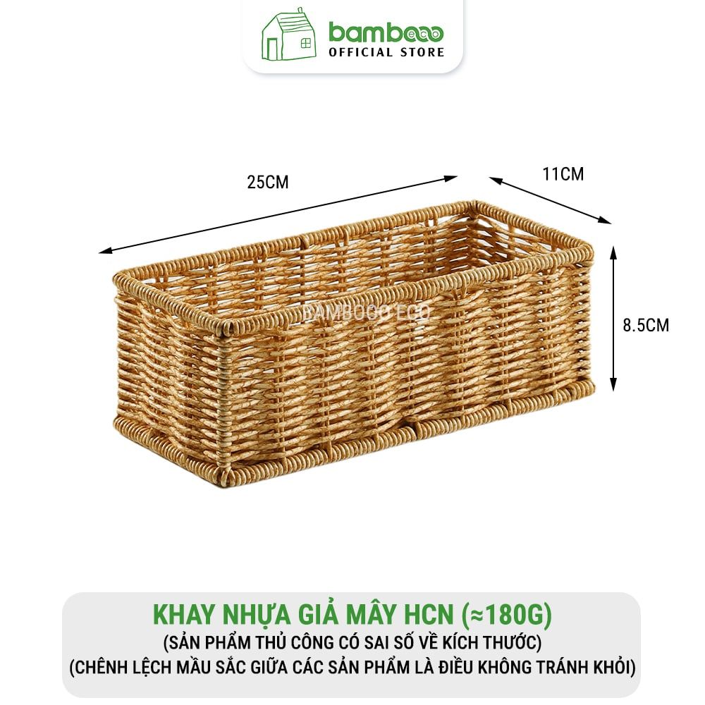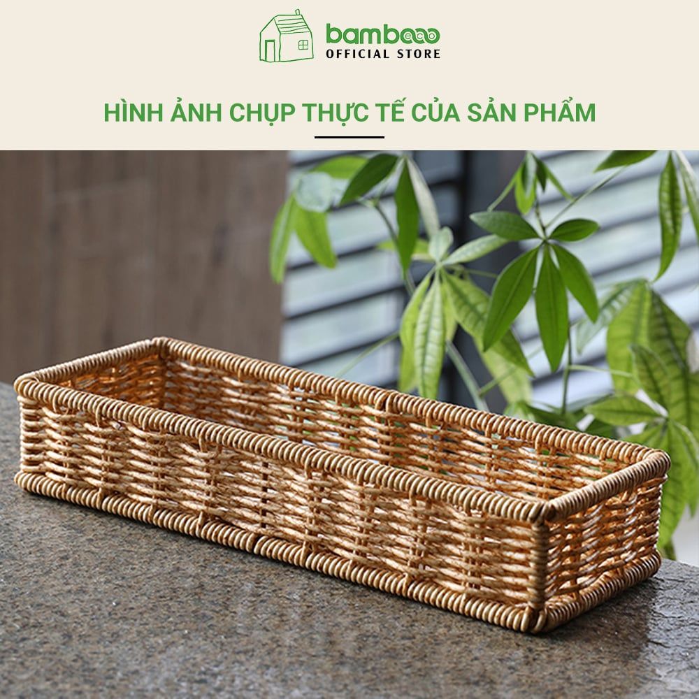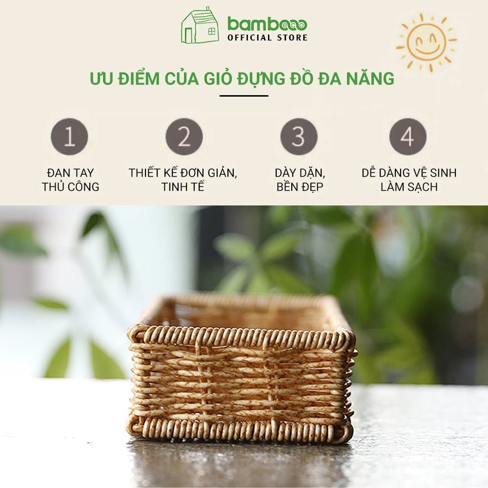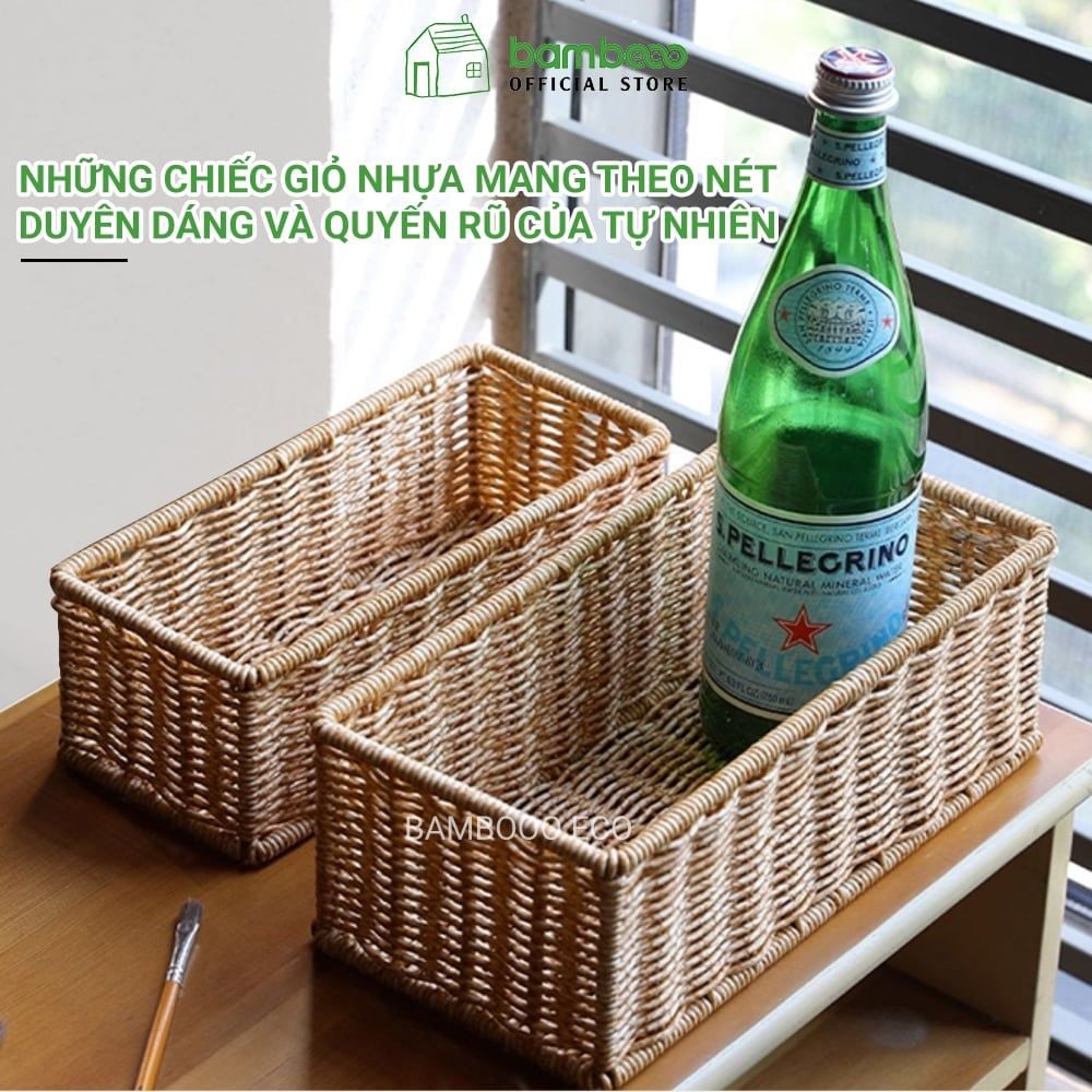 Hộp đựng đồ lặt vặt giả mây BAMBOOO ECO giỏ nhựa đựng điều khiển, gia vị, mỹ phẩm, vật dụng gia đình