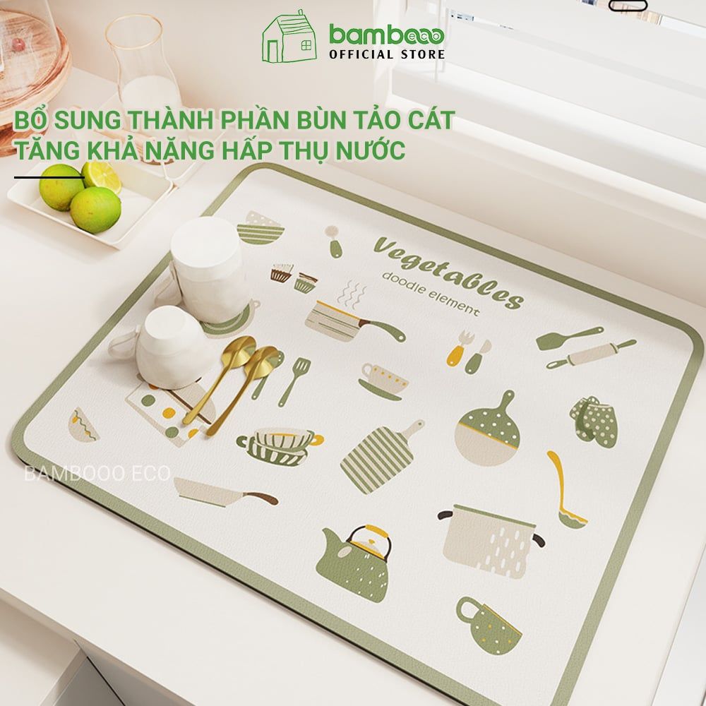 Thảm mặt bếp BAMBOOO ECO thấm hút nhanh, chống trượt dễ lau chùi