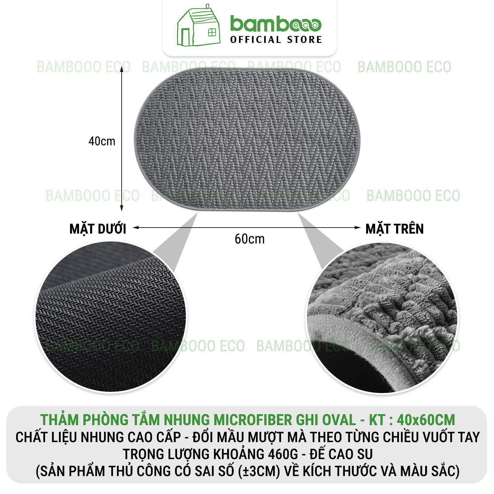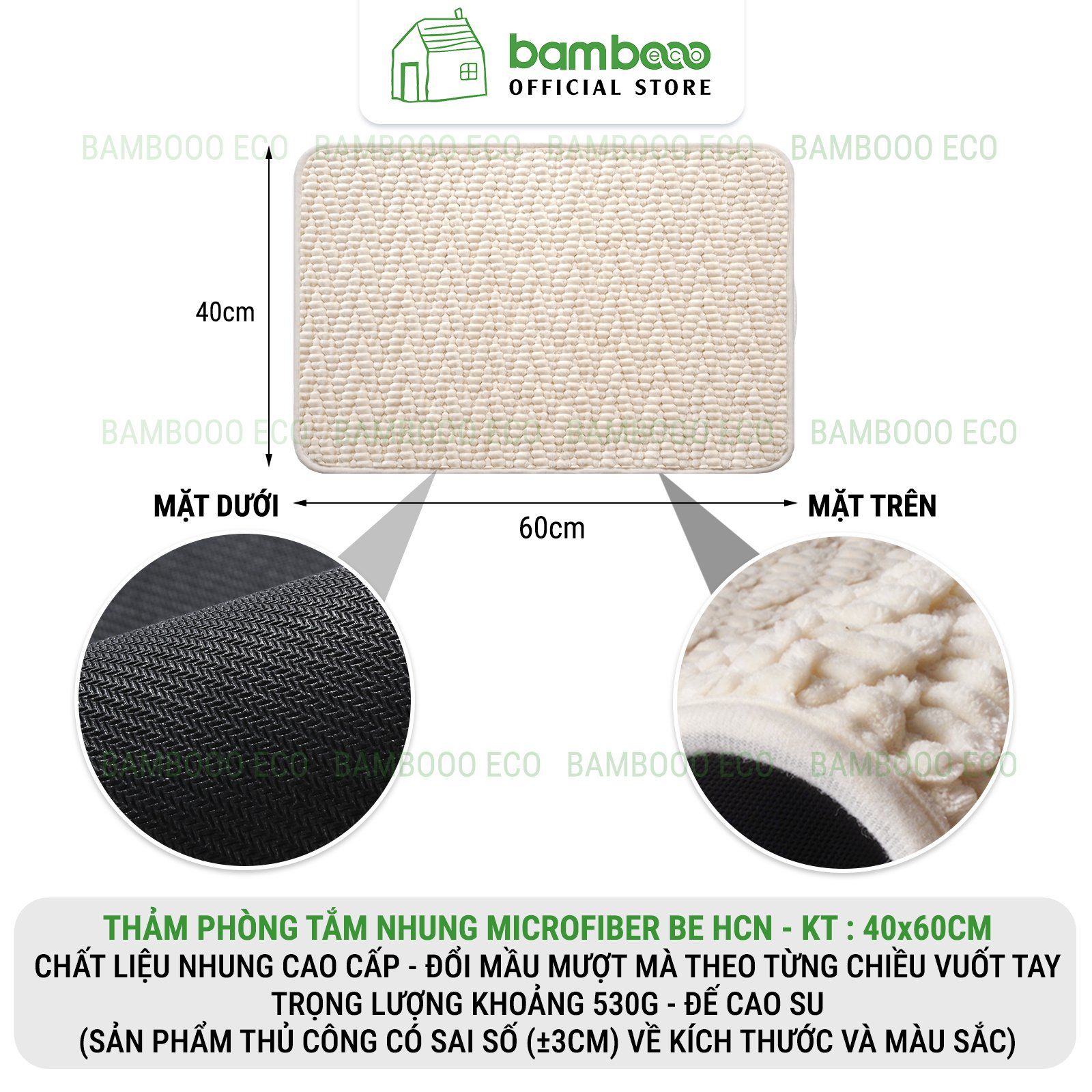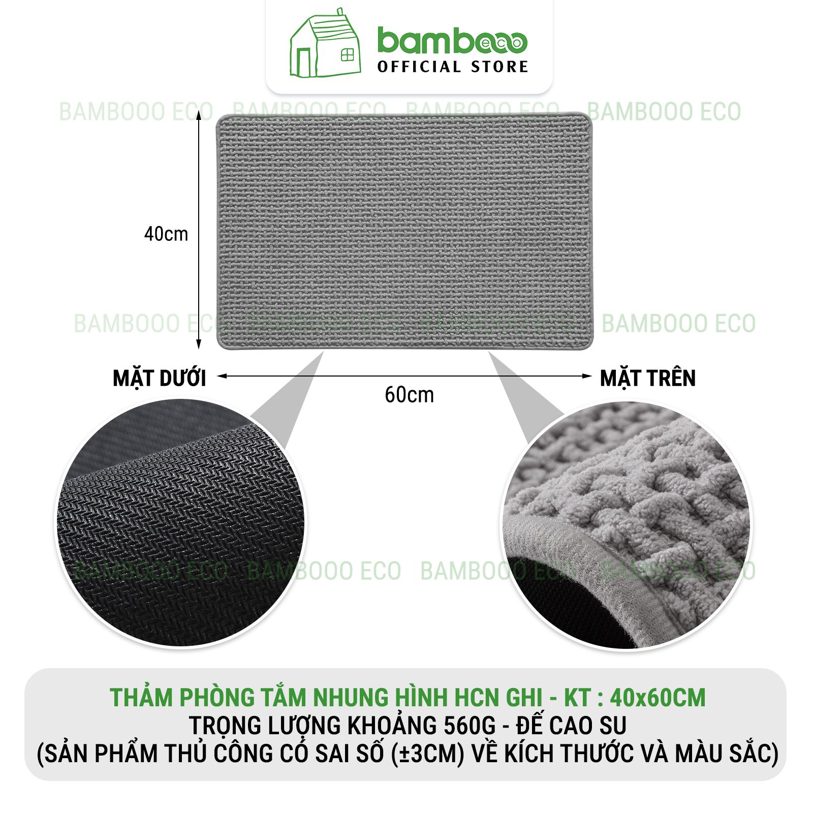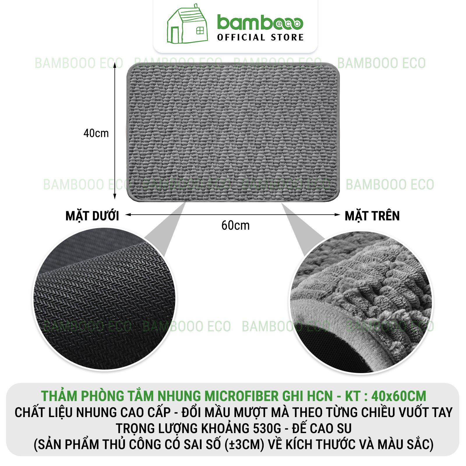 Thảm Phòng Tắm Nhung Cao Cấp BAMBOOO ECO Siêu Thấm Hút , Dày Dặn Nhiều Lớp , Đế Cao Su Chống Trượt